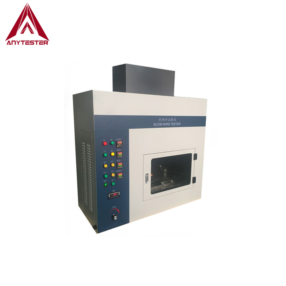 AT802 GLOW WILEL Tester usa el material especificado Ni/Cr (80/120) y el cable de forma a la temperatura de prueba (550 ℃ ~ 960 ℃) por corriente grande en 1min, use presión vertical especificada (1.0n) de hierro vertical el espécimen 30S. Luego, observe si se enciende la muestra o se quema tiempo para determinar el riesgo de incendio del producto eléctrico, el material de aislamiento, etc.