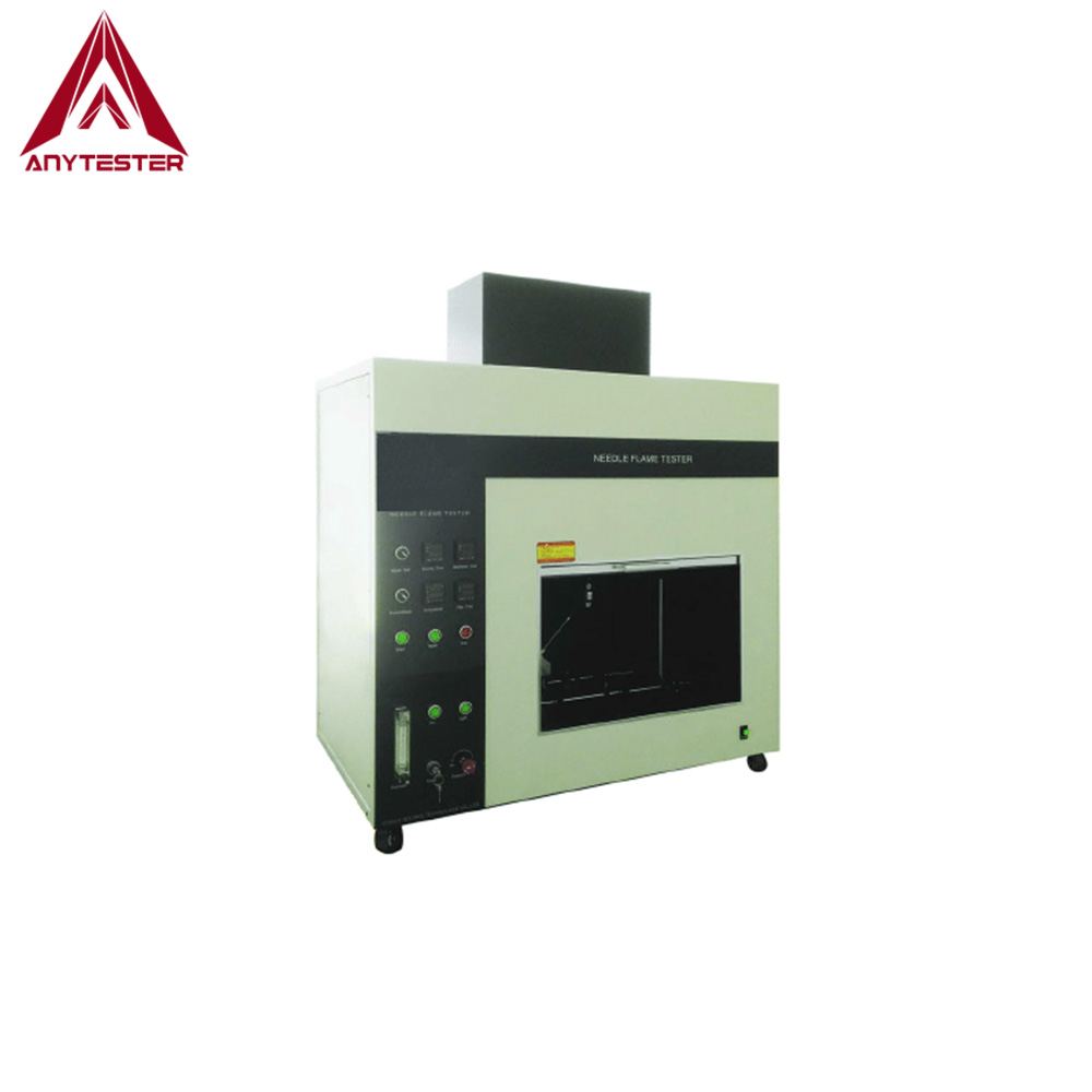 AT803 N E Edle Flame Tester usa un quemador de aguja de tamaño especificado (φ0.9 mm) con gas especificado (butano o propano) enciende la muestra por ángulo especificado (45 °) y tiempo. Observe si el espécimen y la capa se encienden o se queman el tiempo y la longitud de ardor para determinar el riesgo de fuego de la pequeña llama causada por las condiciones de falla del equipo.