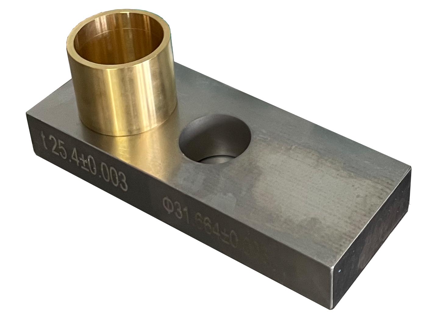 6.1 Bloque de matriz de acero : un bloque de acero de herramienta endurecido, templado (60 hrc), molido y desmagnetizado de acero de aproximadamente 6.50 por 2.50 pulgadas (165 por 64 mm) y 1.0000 ± 0.0001 pulg. (25.400 ± 0.003 mm) de espesor, con un espesor, con un grosor, con un Hole a través de Céntrico Preciso 1.2466 ± 0.0001 pulg. (31.664 ± 0.003 mm) de diámetro con un volumen de 20.0 cm 3 (ver Fig. 2). Las superficies de los lados del bloque de troqueles deberán recibir un tratamiento de rugosidad para ayudar a manejar durante el uso (ver Fig. 1).