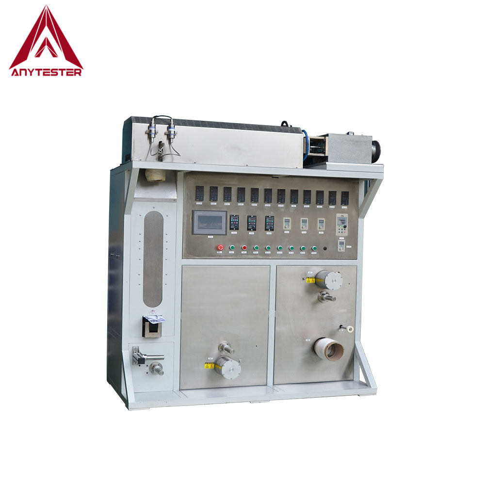 AT227 Sistema de hilado de fibra de fibra es un equipo clave principal en Producción de fibra sintética. Esta máquina utiliza cerámica de alta temperatura para calentar y derretir la muestra de polímero, y extruir la muestra para que sea un goteo líquido de un spinneret bajo el efecto de la presión de gas inerte, luego las fibras nacientes se forman bajo el efecto del enfriamiento del aire. Está especialmente diseñado para una pequeña prueba de producción de lotes para simular la producción de campo.